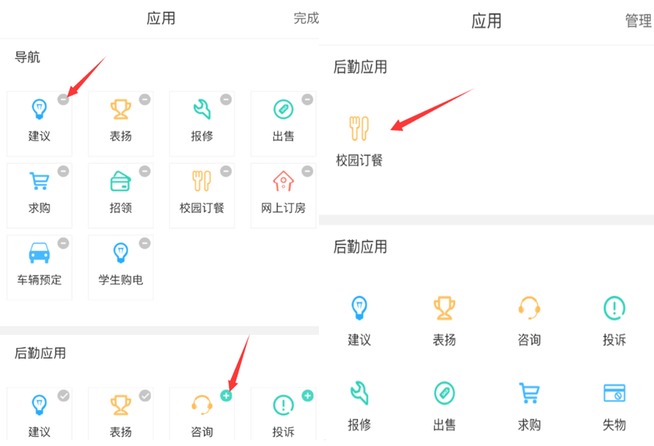 比如小编平时订餐用的比较多,那么小编就可以只保留“校园订餐”这个应用在首页上,平时使用起来就会更加的便利。