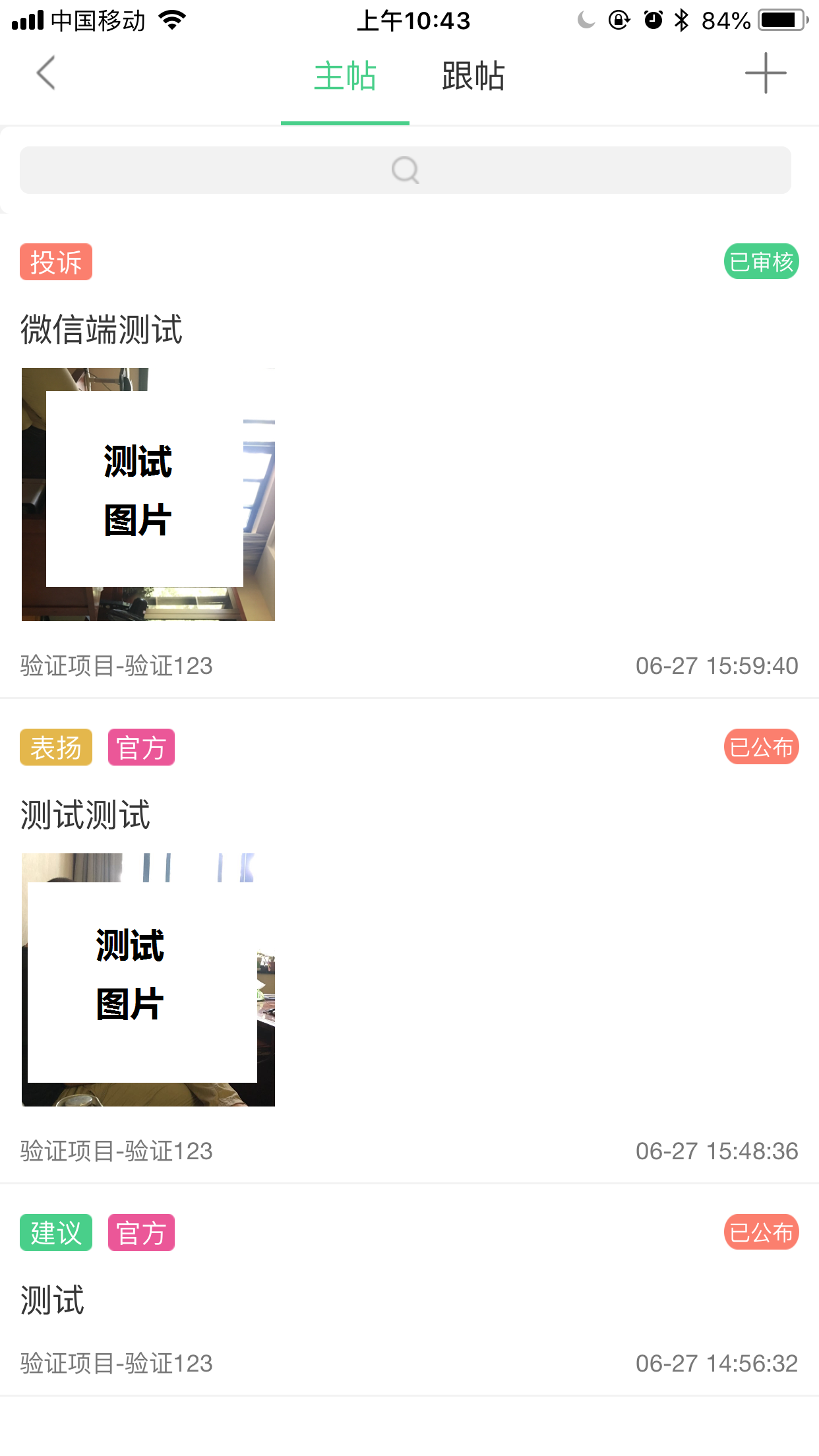 用户则可以在“我的XX”版块中查找到自己的使用记录,比如小编测试了3次发帖,在“我的发帖”中可以看到小编的发帖记录,这个对于查找自己的使用信息也是极其的方便。