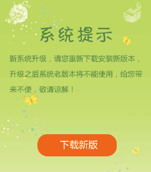 假如你不想提前体验,又或者不想扫码下载,没关系,系统会帮你:在3.0版正式推出时,2.0版将无法进入,同时在2.0版主界面将会出现一个类似下图的系统提示信息,点击选择“下载新版”,即可成功拥有智慧后勤3.0版。