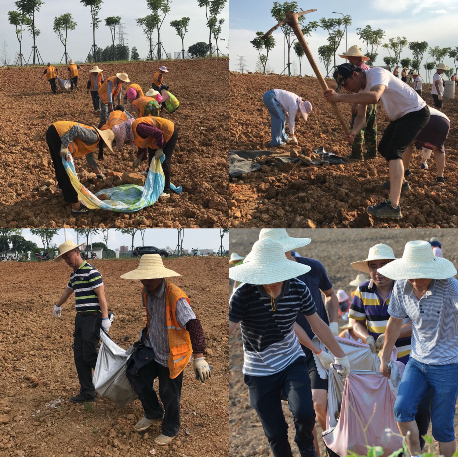 尽管头顶烈日、酷暑难耐,但管理人员和一线员工却在花田里挥汗如雨、干劲十足,用汗水浇灌土地,精心打造花田。有的徒手捡石渣,有的挥舞着锄头、铁锨等工具将大石块挖出,还有的两人一组将石渣、石块运到路边,劳动现场一片火热!经过两个多小时的辛勤劳动,共清理石渣、石块数吨重,清理工作取得较大进展,为下一步土壤旋耕处理、花种播撒等工作如期开展奠定了基础。