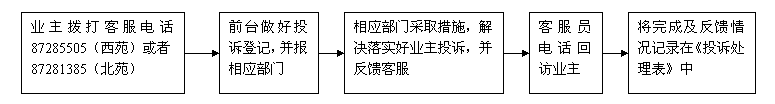 根据物业类型与服务内容的区分,中心下设综合部、品质部、工程部、图书馆物业部、教学楼物业部、办公楼物业部、北苑物业部、西苑(一期、二期)物业部、西苑(三期)物业部九个部门。