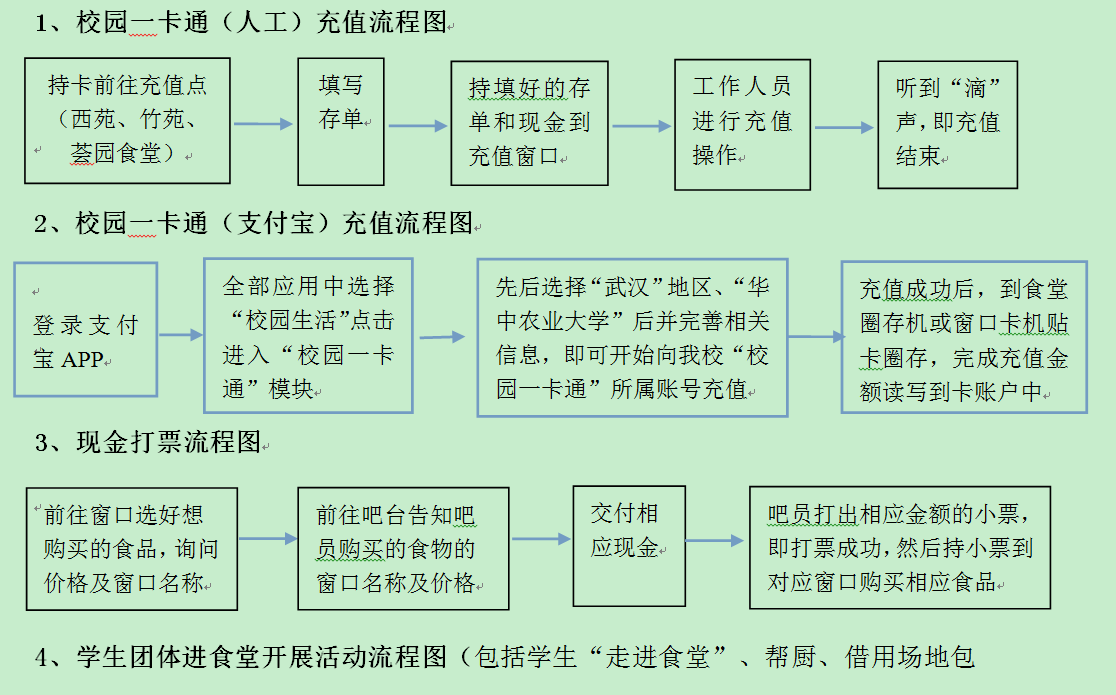 “有志者,事竟成”。经过多年的努力探索和艰苦创业,华中农业大学饮食服务中心不断建立和完善了符合学校食堂特色的内部管理体制和适应社会化改革需要的内部运行机制,实现了设施设备现代化、物资采购溯源化、物流管理系统化、生产加工产业化、制作烹饪监控化、消费分析数据化、沟通服务网络化、人事管理科学化、综合办公信息化的餐饮服务管理体系。其中在生产加工产业化建设上成立了食品配送中心与食品安全检验室,在无添加任何有害添加剂的基础上,自主生产豆制品、豆芽、芝麻酱、卤制品等原材料;统一加工生产米饭、荤食、瓜果菜等,把好源头关,有效控制了食品原材料的安全风险。在全体饮食人的努力下,我校饮食服务中心先后被选定为中国教育后勤协会伙食管理专业委员会常务委员及副秘书长单位、全国高等农业院校伙食管理专业委员会主任单位、湖北省高校伙食管理专业委员会秘书长单位、湖北省高校伙食管理专业委员会主任单位。其中11所食堂获武汉市餐饮服务食品安全A级单位,3所食堂获武汉市餐饮服务食品安全示范单位,3所食堂获湖北省餐饮服务食品安全示范单位,2所食堂获湖北省餐饮服务“放心食堂”称号,2所食堂获全国“2016年度百家中国好食堂”称号。获得全国高校“农校对接”与学生食堂采购工作先进院校、湖北省“一类高校”食堂食品安全知识竞赛特等奖、华中农业大学精神文明先进单位等荣誉称号。