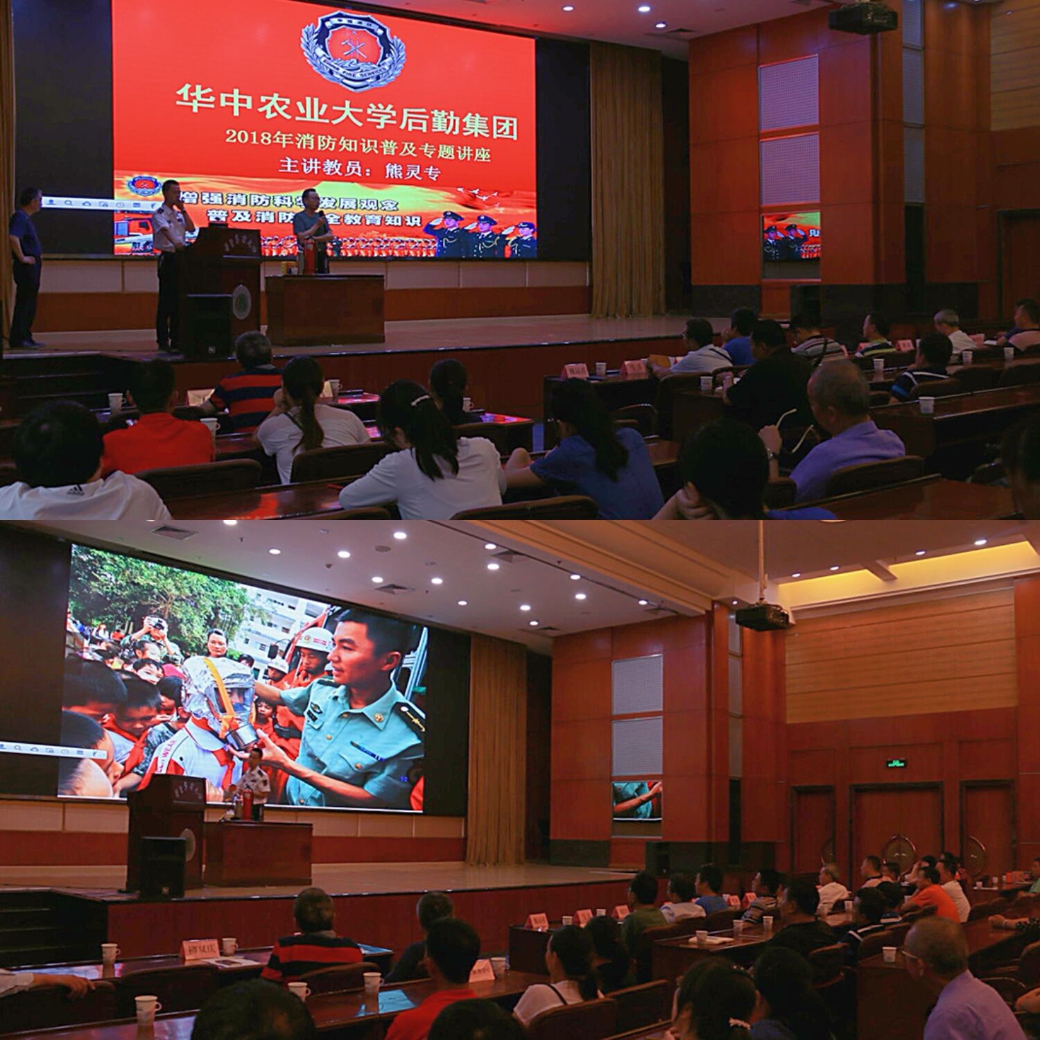 为进一步推进消防安全宣传,切实提高后勤职工消防安全意识、火灾逃生自救能力和消防安全管理水平,创建平安和谐后勤,5月21日下午,后勤集团邀请省消防协会楚安防火中心熊灵专教官在国际学术交流中心一楼报告厅开展了2018年上半年消防安全知识培训活动。本次培训活动由安全与监察部部长陈建雄主持,集团副总经理魏运祥、各中心分管安全负责人以及集团下属九个中心的一线职工200余人参加了此次培训学习。