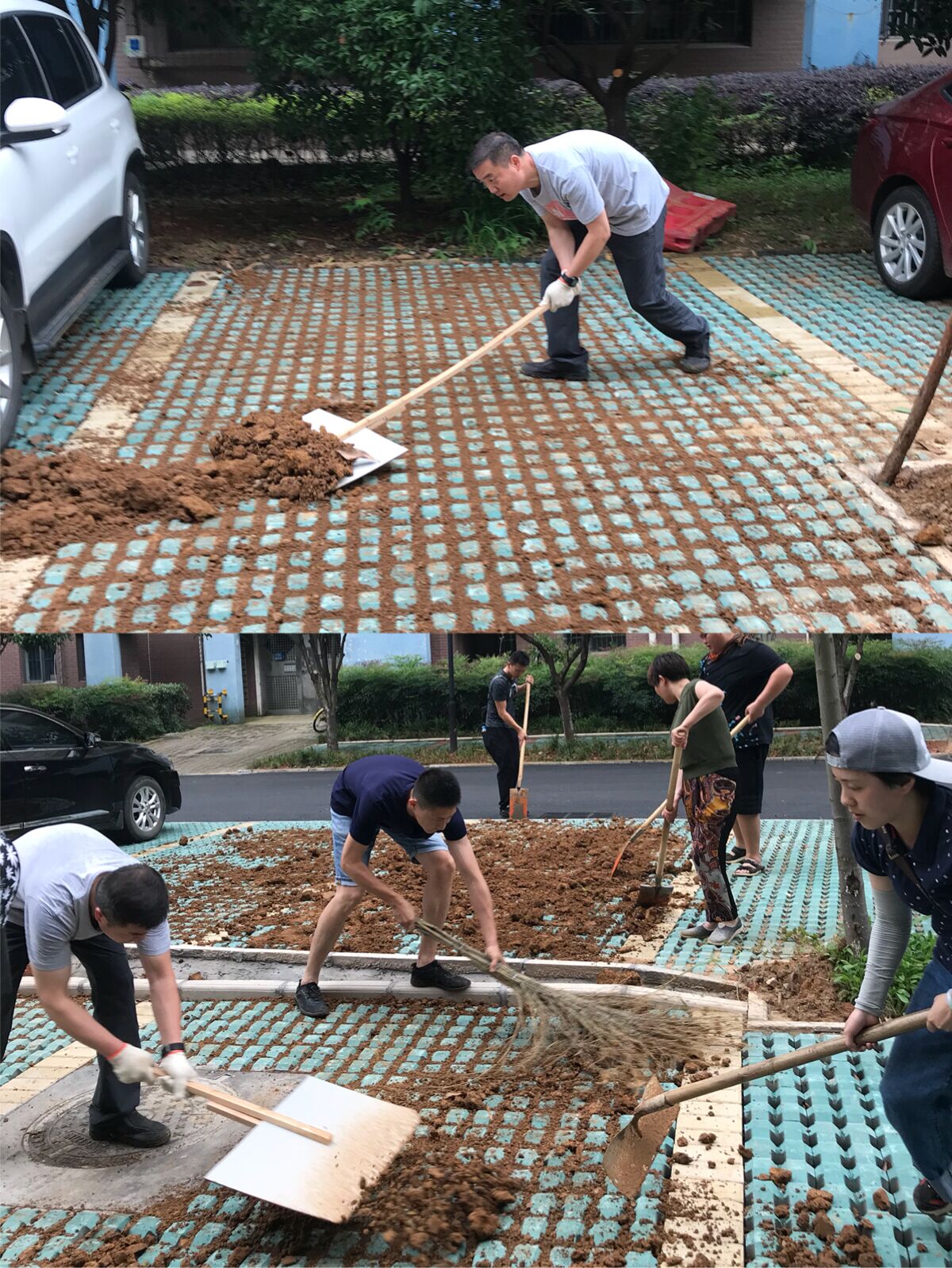 作为此次集体劳动的总指挥,张涛身先士卒,带领绿保人投入到紧张的恢复工作中。在分工上,绿保人各司其职,密切配合,有的负责用铁锨铲土,有的负责用斗车运土,有的负责用铁锨碎土、填土,有的用扫帚扫土、平土,还有的负责清除杂草,劳动现场一片热火朝天的景象。经过一天的辛勤劳动,西苑停车位填土及除草工作取得实质性突破。