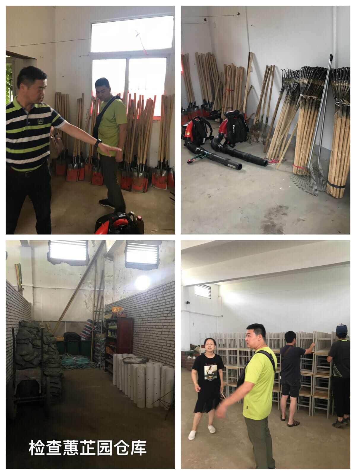 检查蕙芷园仓库时,推开仓库大门,只见一排排铁锨、竹耙、扫帚等如站岗的哨兵般排列整齐,检查人员对仓库管理工作给予了高度肯定,同时苗圃部长申伟建议各部门每月选定固定时间,形成长效机制,加强仓库管理工作,将安全隐患消灭在萌芽状态,得到一行检察人员的高度认可。检查组先后检查了荟园、博园地埋式垃圾站、机动车部及占家山仓库和占家山职工宿舍。蔡涛副总经理对地埋式垃圾站环境卫生整治成效给予了充分认可,同时大家对叶虎、陈鹏等同志的辛勤付出给予高度赞赏。占家山机动车部的检查结果令人欣喜,员工安全意识大幅提升,安全举措进一步增强,如打造了新的操作台,更换了砂轮机、切割机、台钳、台钻等设备,新增了工具柜,所有工具用完后收纳入柜,这些举措促使工作便捷度、整洁度和安全度大幅上升。检查组一行入户查看职工宿舍安全卫生情况时,认真的向职工叮嘱安全注意事项,并按照检查标准现场依次打分,评选“安全文明职工宿舍”。