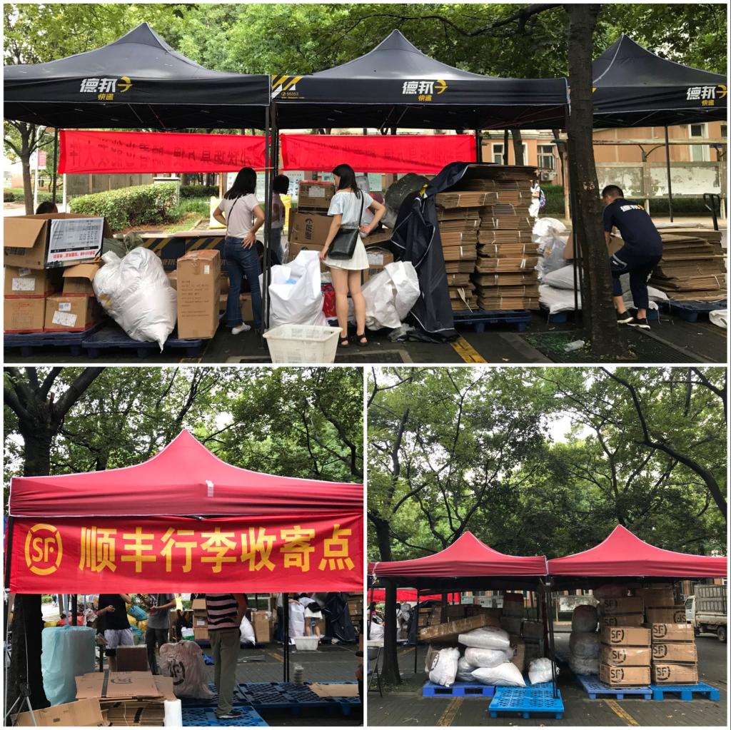 6月19日—6月25日,物业管理服务中心在大学生宿舍区——荟园5栋门前空地设立临时行李托运集中点,为2018届毕业生现场办理行李托运,确保毕业生毕业离校的同时,行李也能安全到家。