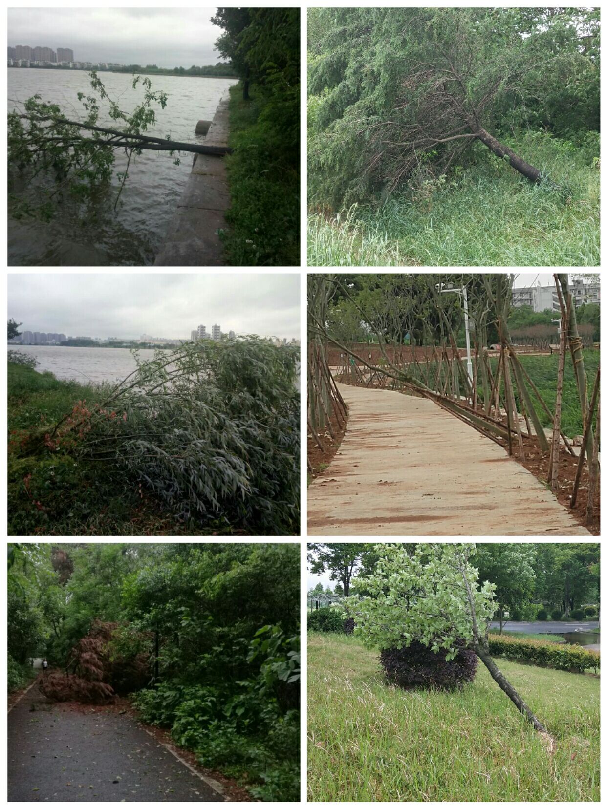 4月22日晚,武汉又一次迎来了大风和降雨天气,武汉市发布大风蓝色预警。这样的恶劣天气又一次对校园树木和绿化工程新栽苗木造成了破坏:沿湖东路、绿道、北苑、中心花园、人文楼南、园林学院基地绿化工程、绿保中心苗圃基地均有树木倒伏。